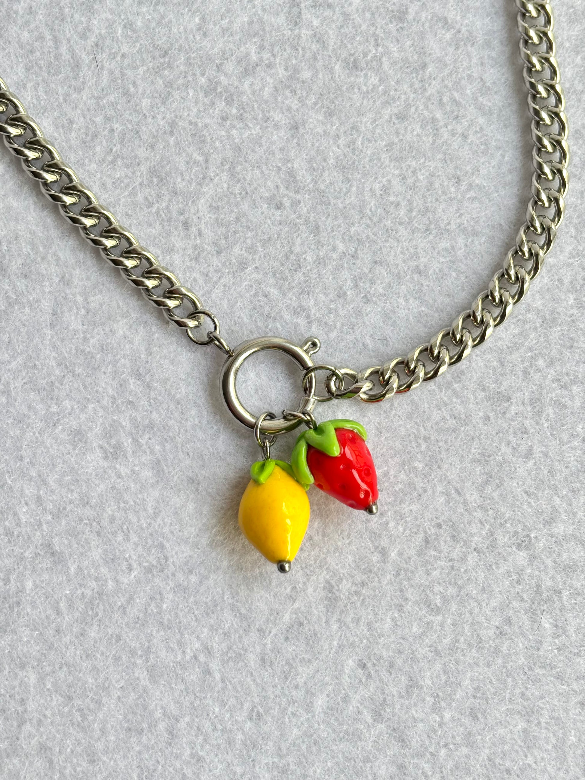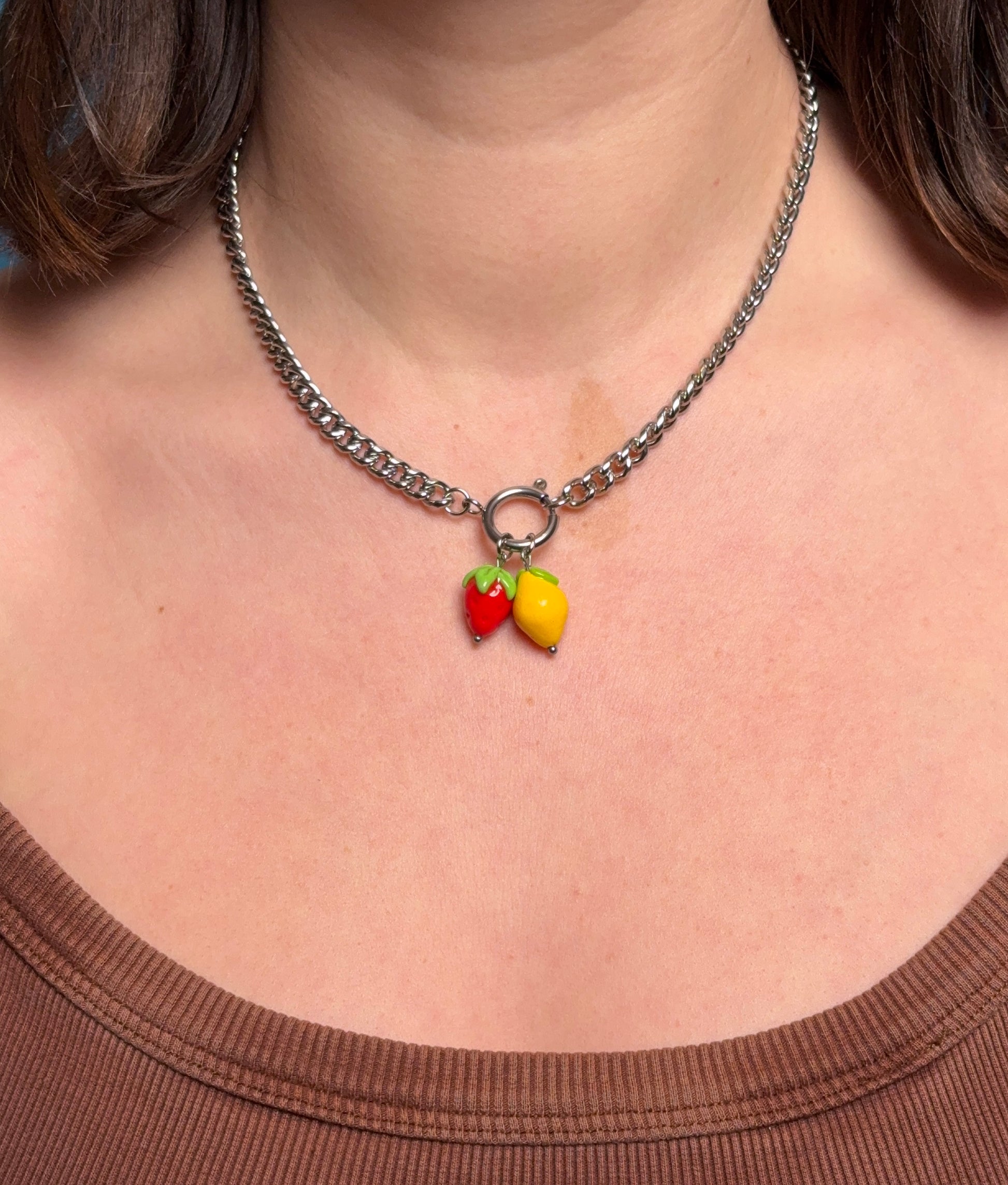 > The charms have to be bought separately! They are all completely handmade with polymer clay and then glazed with UV resin. They all come ready to be added to either your necklace, bracelet or hoops (one size for all).