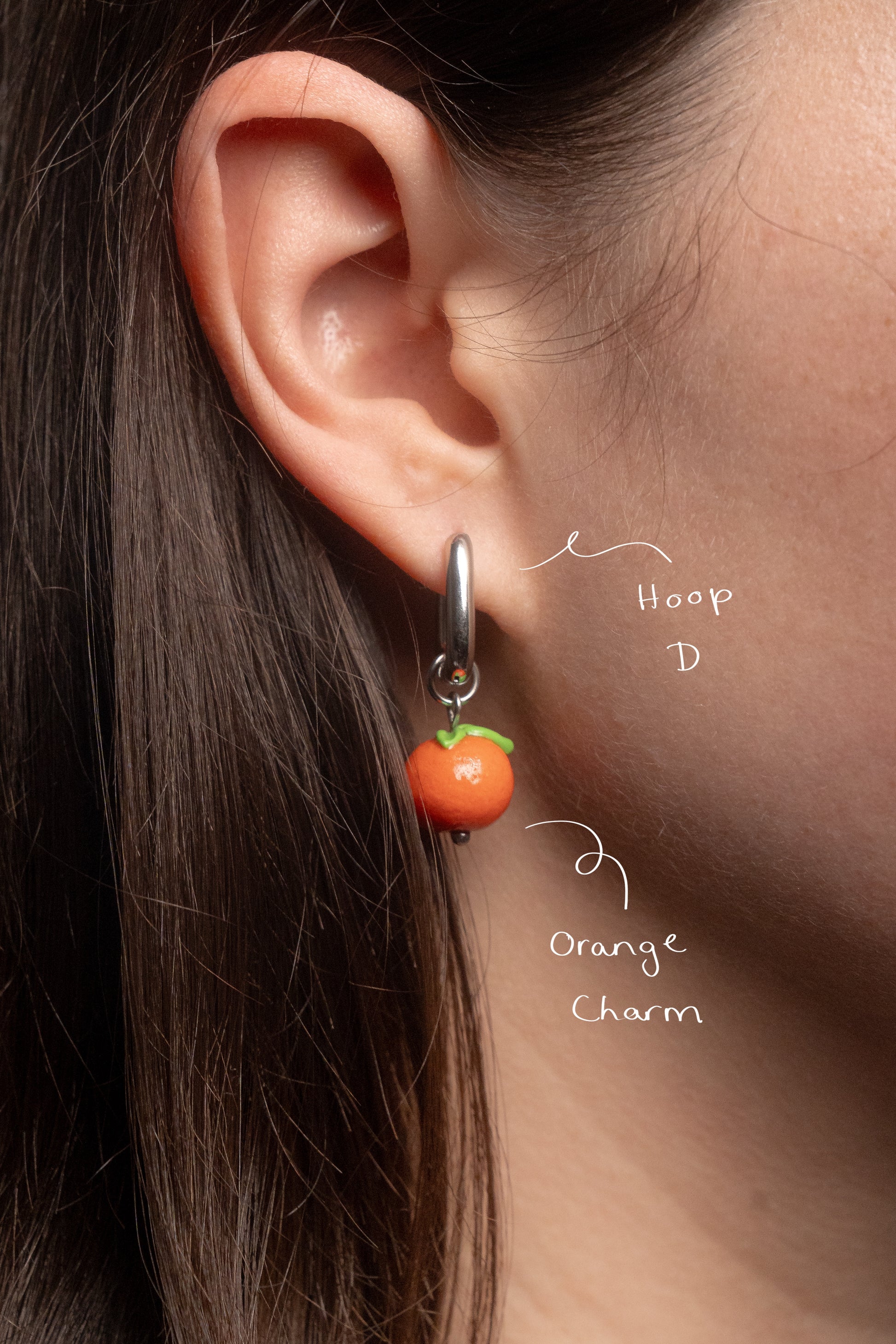 > The charms have to be bought separately. They are all completely handmade with polymer clay and then glazed with UV resin. They all come ready to be added to either your necklace, bracelet or hoops (one size for all).